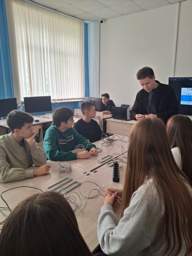 Наши замечательные преподаватели — Евгения Михайловна Гильзер, Руслан Хафизович Байбулатов, Надежда Борисовна Тяпкина и Алия Ильдусовна Файзулова — помогли им погрузиться в мир IT-профессий. Гости пробовали себя в роли специалистов по компьютерным сетям, инженеров-электронщиков и веб-техников.