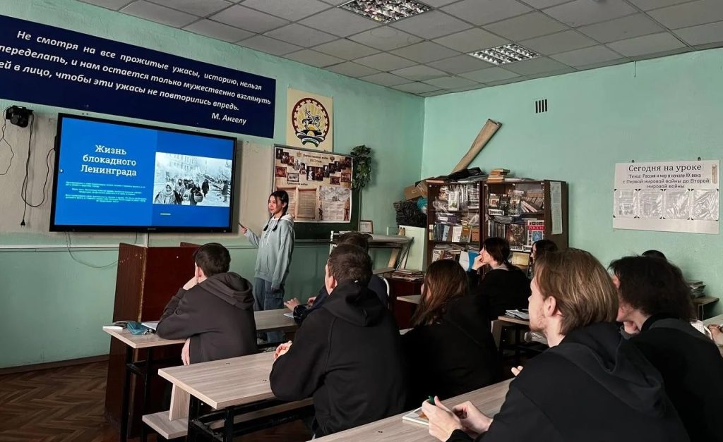 Преподаватель по истории Наталья Глебовна на уроках в группах 25П-2, 25СА-1 рассказали о подвигах ленинградцев. Для закрепления материала была проведена викторина, а в завершение – урока – просмотр тематического видеофильма, раскрывающего хронику блокадных дней.