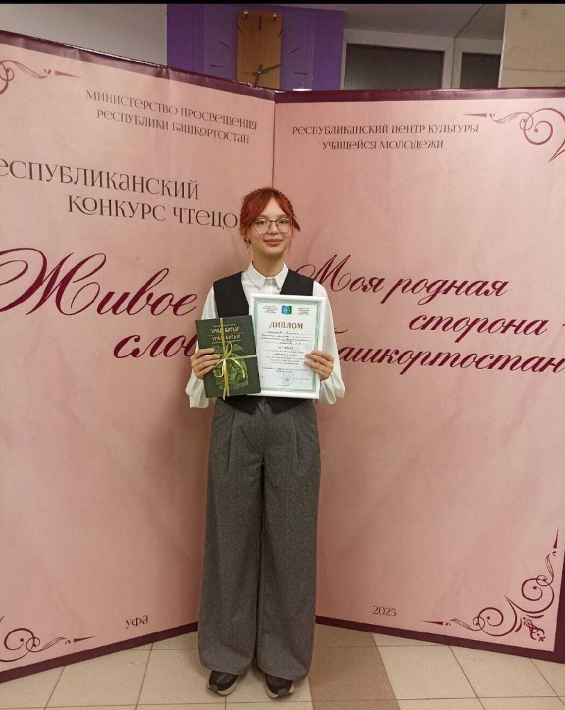 Конкурс, посвященный 35-летию принятия Декларации о государственном суверенитете нашей республики, стал настоящим праздником поэзии и патриотизма. Под торжественной темой «Моя родная сторона — Башкортостан!» наши чтецы смогли донести до всех зрителей всю глубину и красоту художественного слова. От всей души желаем Рите и Ксении не останавливаться на достигнутом, бережно нести в мир свою любовь к родной земле и дарить людям волшебство поэзии