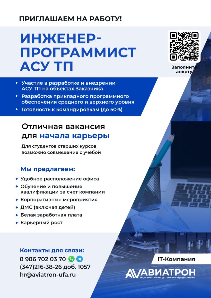 Если кто-то из выпускников колледжа заинтересован в данной вакансии, пожалуйста, свяжитесь с нами или отправьте резюме на адрес электронной почты: otdelkadrov@allufa.ru