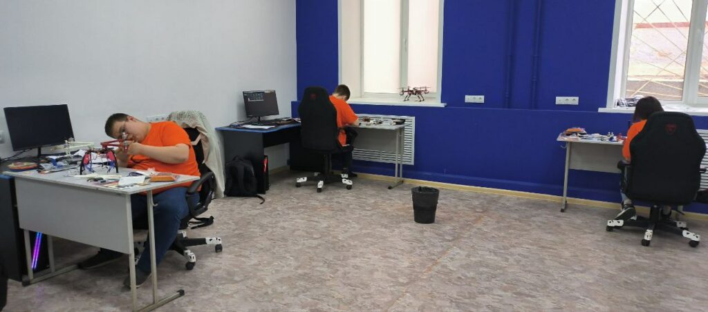 Мастерская беспилотных летательных аппаратов представляет собой специализированный учебный кабинет, предназначенный для проведения занятий по моделированию, конструированию, сборке, пилотированию и программированию квадрокоптеров.